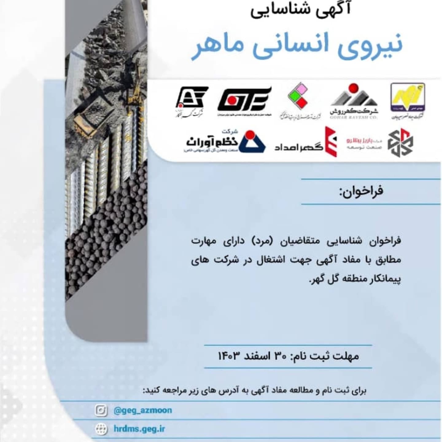 آگهی استخدام نیروی ماهر در گل گهر