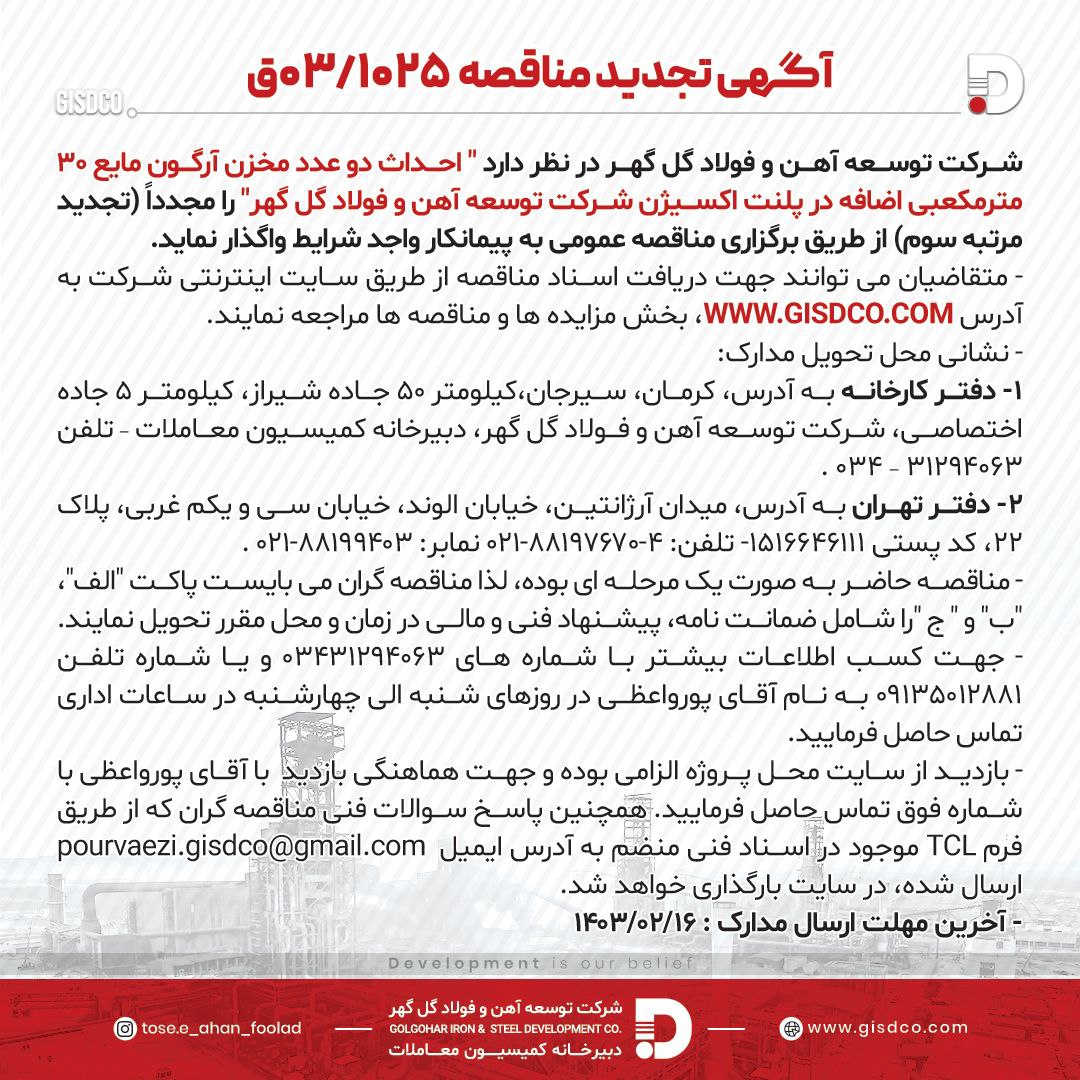 توسعه آهن و فولاد گل گهر بهار ۱۴۰۳ مناقصه
