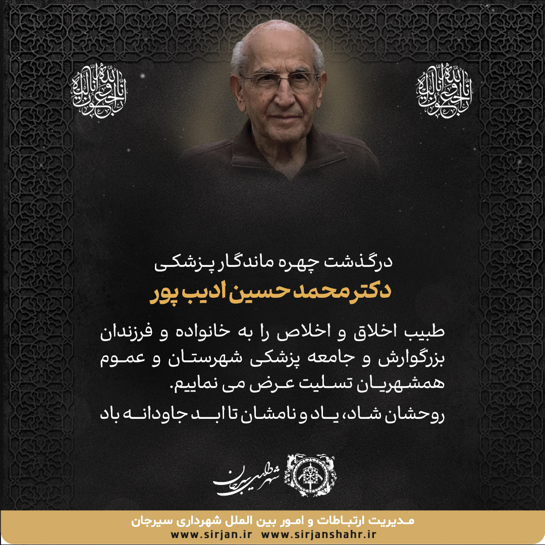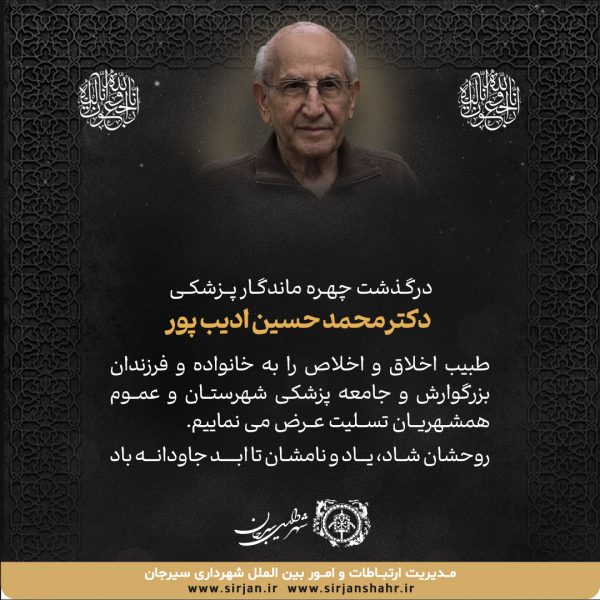 آگهی درگذشت چهره ماندگار پزشکی دکتر محمدحسین ادیب پور شناسه خبر: 20033 تاریخ و زمان ارسال: 12 تیر 1403 ساعت 7:36