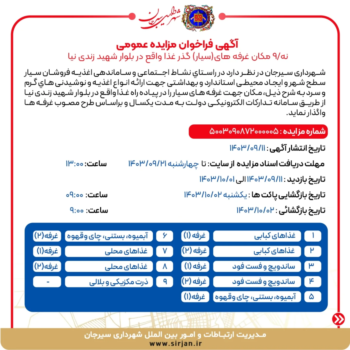آگهی فراخوان مزایده عمومی غرفه‌های گذر غذا