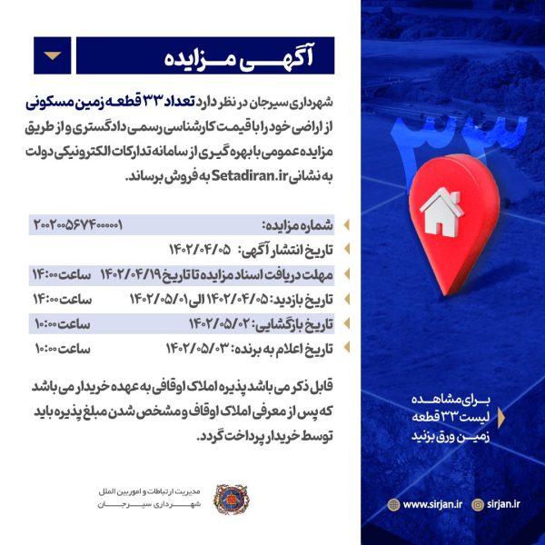 آگهی مزایده ۰۴/۱۱۷۴ ق
