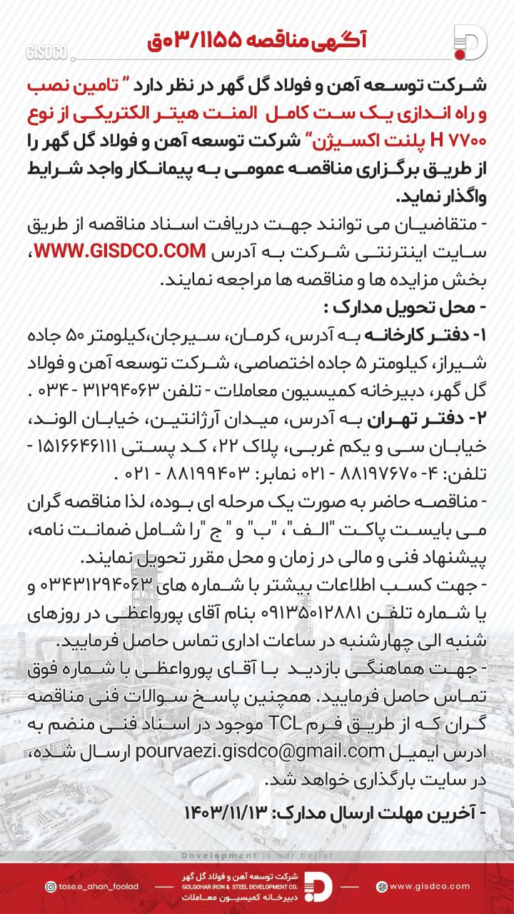 آگهی مناقصه ۰۳/۱۱۵۵ق
