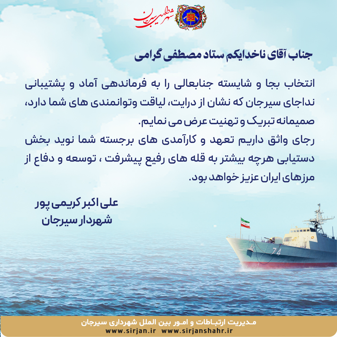 انتصاب فرمانده جدید سکاندار آماد و پشتیبانی نیروی دریایی راهبردی شناسه خبر: 19951 تاریخ و زمان ارسال: 24 خرداد 1403 ساعت 13:16