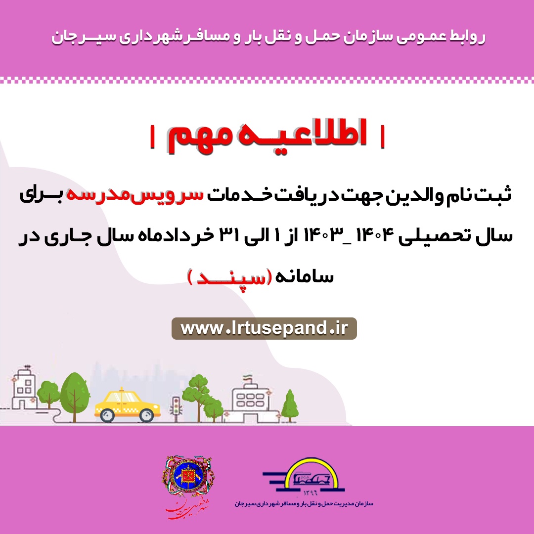 ثبت نام والدین جهت دریافت خدمات سرویس مدرسه در سامانه (سپند) از اول خردادماه