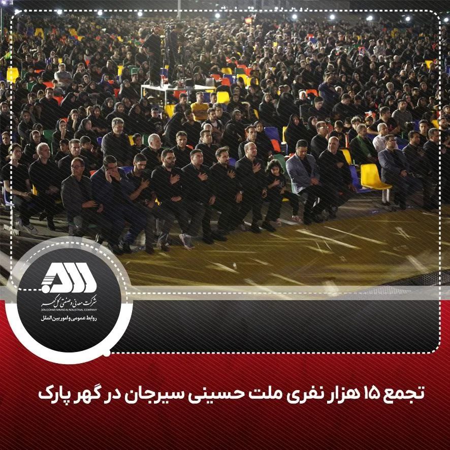 عزاداری متمرکز شرکت های معدنی و صنعتی گل گهر و هیأت های مذهبی شهرستان سیرجان همزمان با پنجمین روز از ماه محرم با شعار «باور حسینی، رویش کربلایی» و با حضور بیش از ۱۵ هزار نفر در دهکده گردشگری گهر پارک سیرجان برگزار شد.