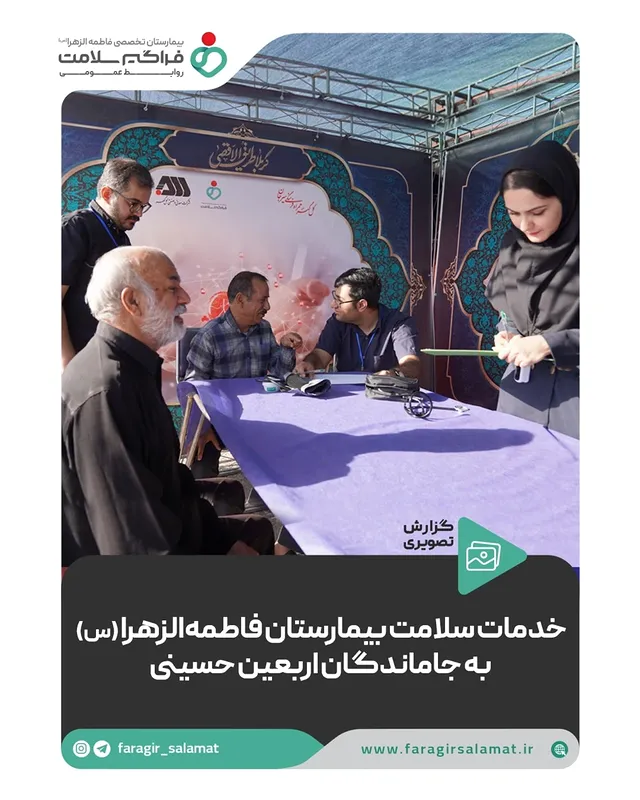 در سیرجان بیمارستان تخصصی فاطمه الزهرا (س) با همکاری واحد HSE شرکت گل گهر در دو موکب یکی در مسیر پیاده روی و دیگری در صحن امامزاده علی (ع) خدمات سلامت به زائران ارائه کرد