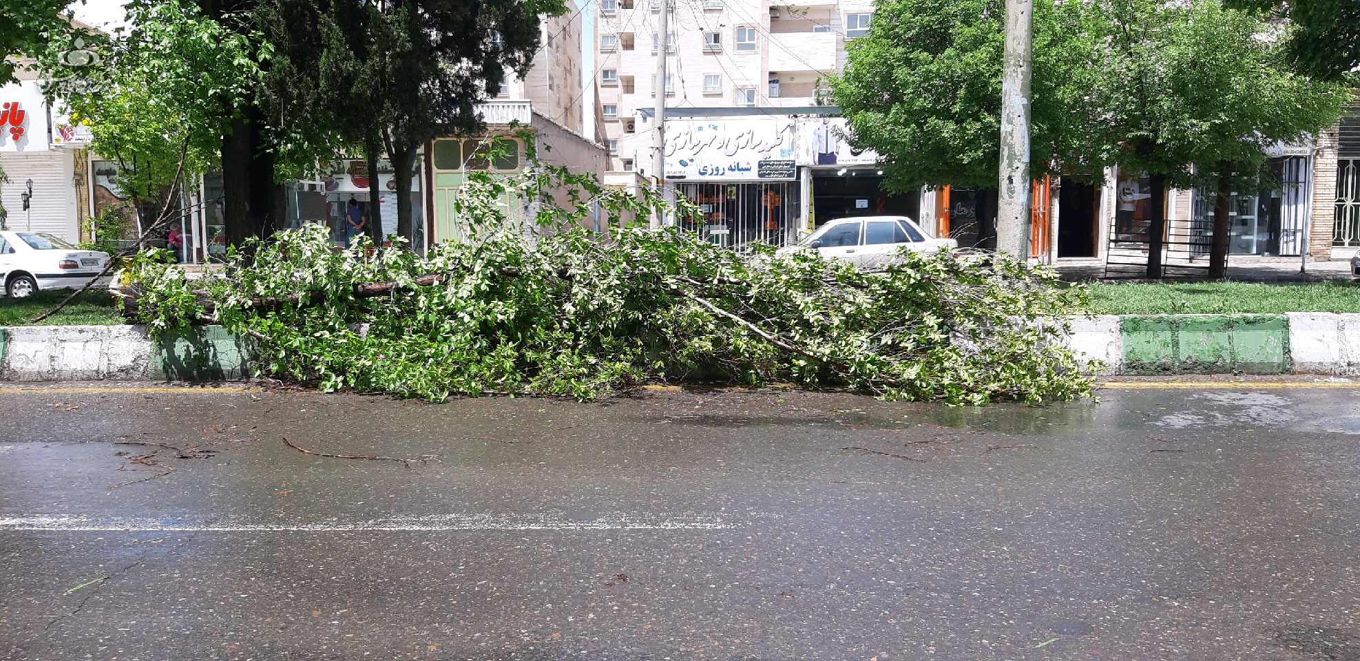 وزش باد شدید ۳ دقیقهای شاخه ۳۰ اصله درخت در نقاط مختلف شهر سیرجان را شکست.