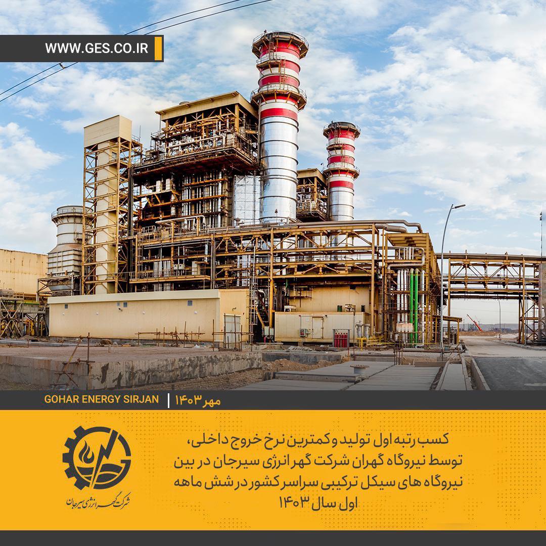 در همین راستا و بر اساس ارزیابی و اعلام شرکت مادر تخصصی تولید نیروی برق حرارتی کشور، شرکت گهر انرژی سیرجان با ثبت ۹۹/۸ ٪ آمادگی ، حائز کسب رتبه نخست ، در زمینه تولید و آمادگی تولید برق در بین نیروگاه های سیکل ترکیبی سراسر کشور شد.