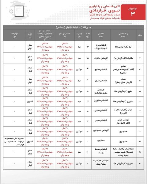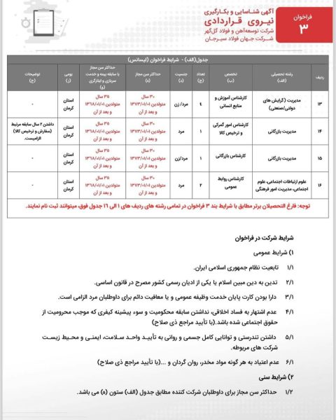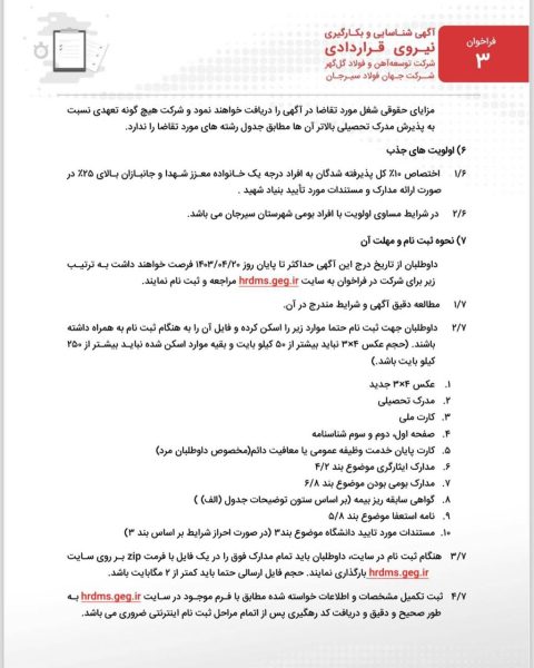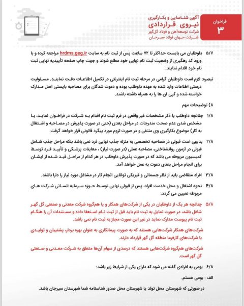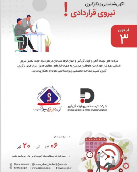 فراخوان شناسایی و بکارگیری نیروی قراردادی شرکت توسعه آهن و فولاد گل گهر