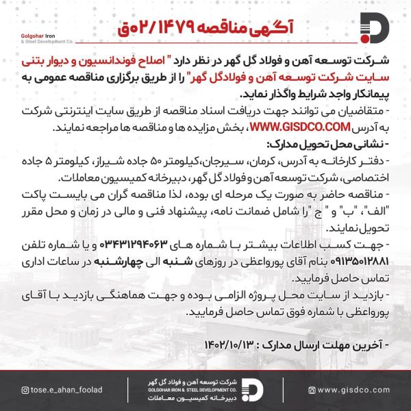توسعه آهن و فولاد گل گهر زمستان ۱۴۰۲ مناقصه
