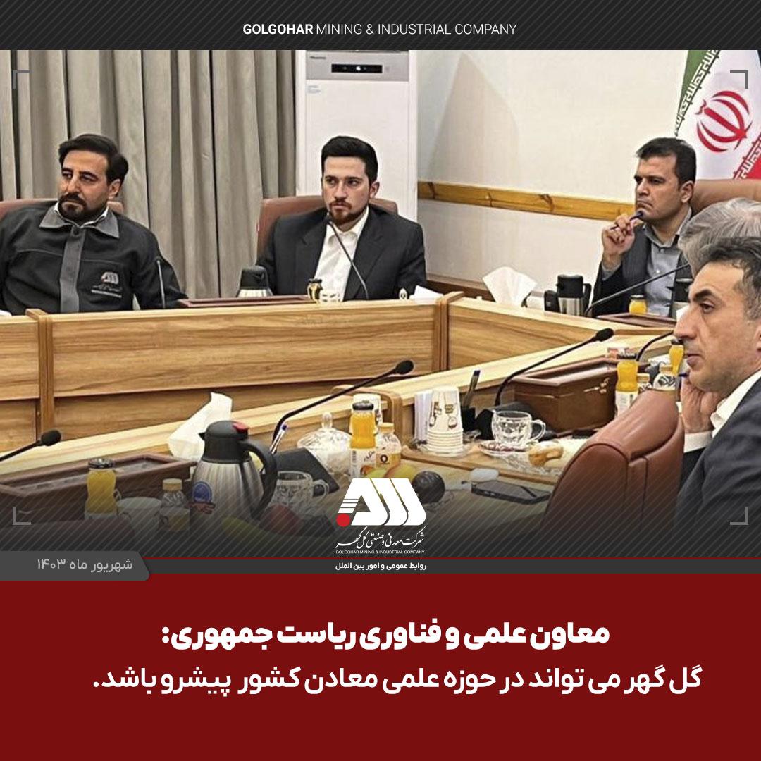 🔵 دکتر حسین افشین معاون علمی ، فناوری و اقتصاد دانش بنیان رییس جمهور در این جلسه گفت : گل گهر می تواند در حوزه علمی معادن کشور پیشرو باشد.