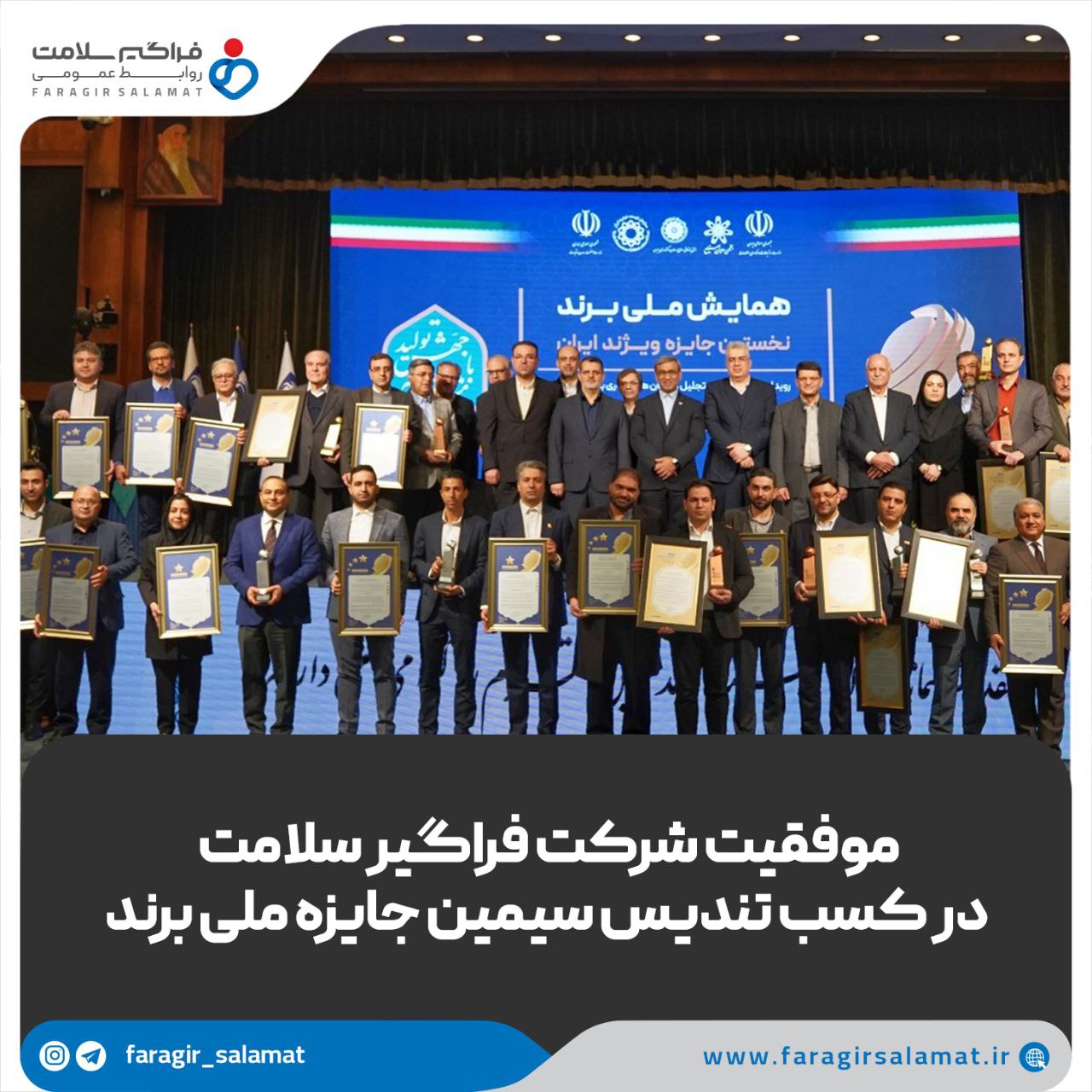 در نخستین همایش ملی برند که ۱۶ اسفند ماه ۱۴۰۳ در مرکز همایشهای بینالمللی صدا و سیما برگزار شد، شرکت فراگیر سلامت با تلاشهای مستمر و تعهد به کیفیت، موفق به کسب تندیس سیمین جایزه ملی برند شد. این رویداد با هدف معرفی و تجلیل از برترین نشانهای تجاری کشور برگزار گردید و فراگیر سلامت بهعنوان یکی از برندهای پیشرو در حوزه سلامت مورد تقدیر قرار گرفت.