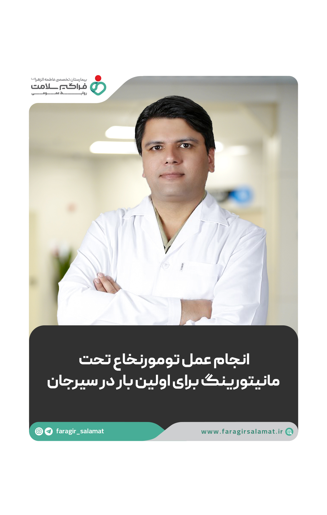 برای نخستین‌بار در شهرستان سیرجان، جراحی پیشرفته‌ی تومور نخاعی تحت مانیتورینگ عصبی حین عمل، با موفقیت در بیمارستان تخصصی فاطمه‌الزهرا (س) فراگیر سلامت انجام شد.