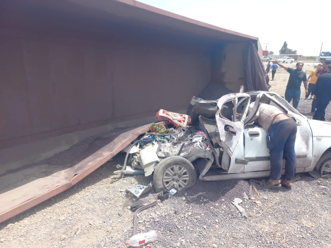 ۲ کشته در واژگونی تریلر بر روی خودرو تیبا