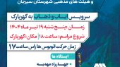 سرویس ایاب و ذهاب به گهرپارک زمان حرکت اتوبوس‌ها رأس ساعت ۱۷ ایستگاه‌ها •چهارراه مهدیه •پارک‌سوار دهیادگار •مساکن مهر روبروی کلانتری ۱۴ •بلوار سردار جنگل مقابل اداره‌ارشادسابق زمان بازگشت اتوبوس‌ها پس از پایان مراسم عزاداری   *روابط عمومی شرکت معدنی و صنعتی گل گهر* سایت: Www.geg.ir اینستاگرام: https://www.instagram.com/golgohar_co?igsh=aG80bzNwbGJzdXg0 تلگرام: https://t.me/Golgohar_co